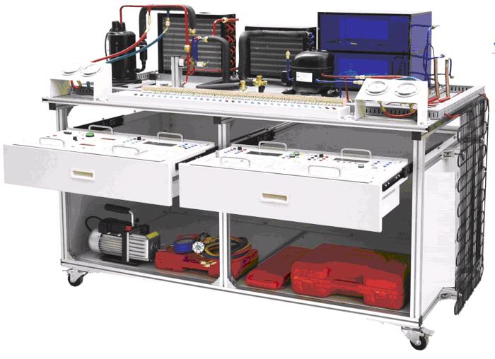 1.該裝置集制冷空調(diào)系統(tǒng)安裝、冰箱系統(tǒng)安裝、制冷系統(tǒng)電接線、壓力檢漏、抽真空、 充注制冷劑與運行調(diào)試于一體,包含了制冷系統(tǒng)維修的全部步驟,能滿足實訓(xùn)教學(xué)、實際工程訓(xùn)練及職業(yè)技能競賽的需要。