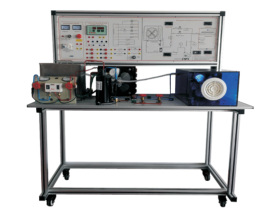 恒溫恒濕機組系統(tǒng)實驗裝置是采用直流式空氣處理系統(tǒng),并配置壓縮機、風冷冷凝器、蒸發(fā)器、加濕器、電加熱器和風管等真實部件,可測量壓力、溫度、濕度等過程參數(shù)。通過對本裝置的實驗,能使學生熟悉直流式系統(tǒng)的空氣處理過程,并得到熱工測量和計算的基本訓練。本裝置適用于“制冷空調原理及應用”、“制冷空調技術”、“建筑電氣控制技術”等課程的實驗教學。