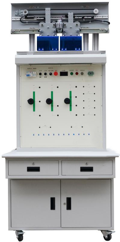 電梯門繼電器控制操作實訓(xùn)裝置由實訓(xùn)桌和實訓(xùn)臺兩部份組成。