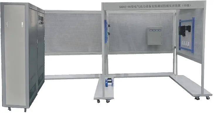 多功能配線培訓(xùn)裝置柜體分為上中下三部分。柜體上部為低壓配電屏,可以進行低壓配電柜一次設(shè)備安裝配線和剩余電流保護器的安裝配線,主要部件有電壓、電流指示儀表和刀開關(guān)、按鈕開關(guān)指示燈等組成。中部為多功能網(wǎng)孔板,便于各種電氣元件的安裝,可安裝正反面網(wǎng)孔板,便于安裝儀表、動力及照明設(shè)備的安裝配線。下部可以放置電機等設(shè)備。用于培訓(xùn)學(xué)員學(xué)習(xí)各種低壓設(shè)備安裝及配線工藝。