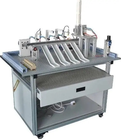 本實(shí)驗(yàn)裝置是依據(jù)機(jī)電一體化教學(xué)的要求而開發(fā)的,它涵蓋了PLC技術(shù)、氣動(dòng)技術(shù)、傳感器技術(shù)、位置控制技術(shù)等內(nèi)容,是實(shí)際工業(yè)現(xiàn)場生產(chǎn)設(shè)備的微縮模型。