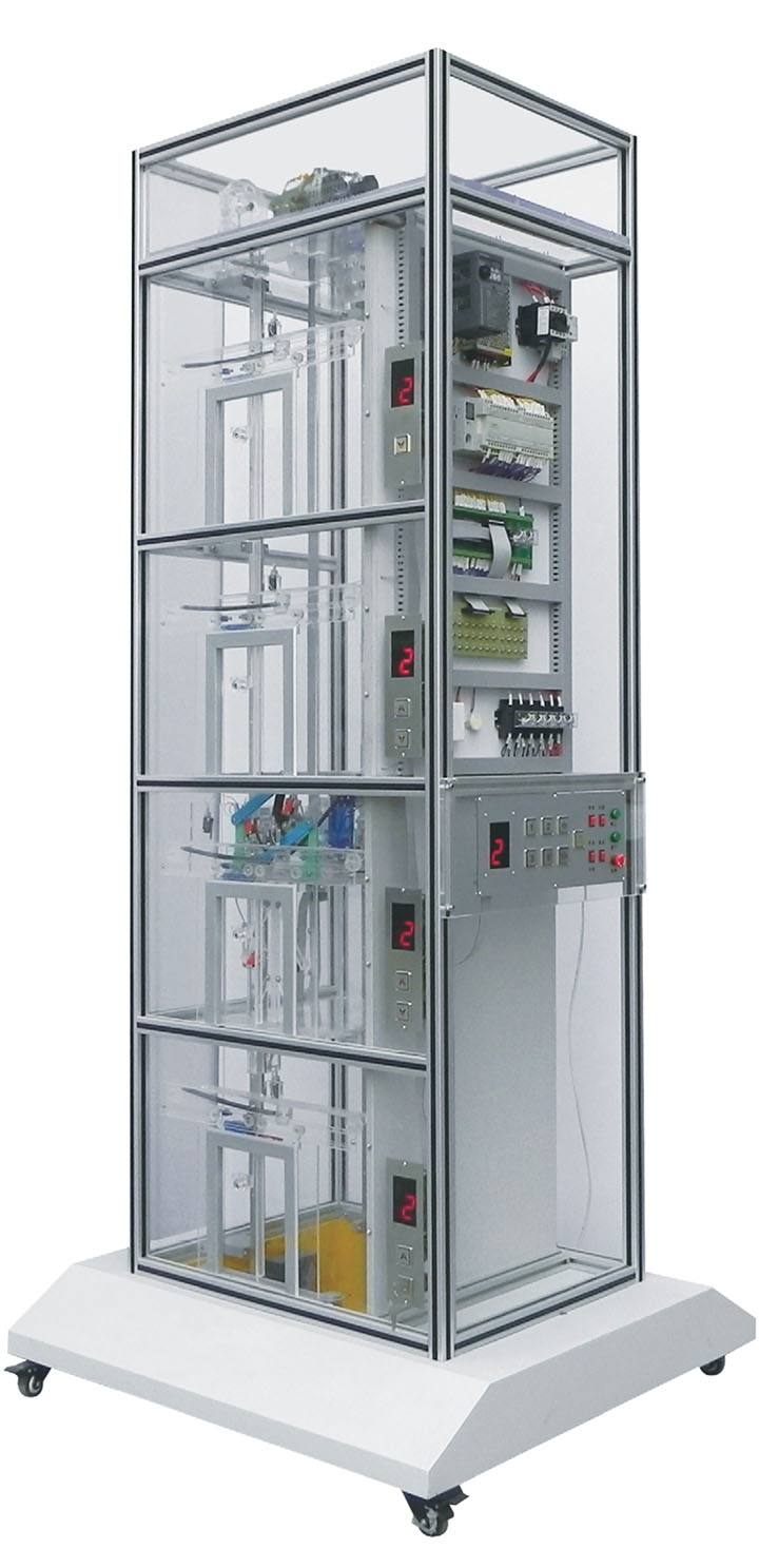 1、由兩臺(tái)四層透明仿真教學(xué)客梯組成,由層外兩處按鈕共同控制。
