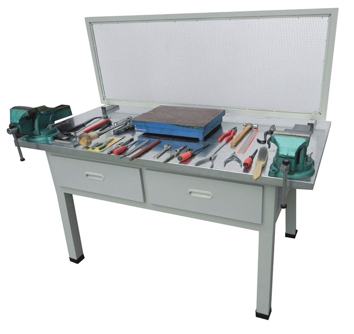 鉗工實(shí)驗(yàn)室(一張桌2工位/組)每組詳細(xì)配置如下:可以完成常用工具的認(rèn)識和使用,錘、鋸、銼、鑿、劃線、裝配、調(diào)試、安裝、維修等教學(xué)工具。