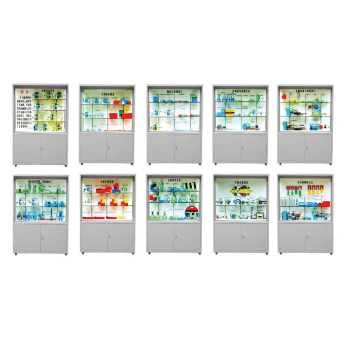 3、柜背設(shè)有對開門,有利維護設(shè)備和方便維修。柜下部設(shè)有柜箱,方便存放單個模型、實驗箱及相關(guān)實驗文檔。柜底裝有萬向輪,方便移動,符合人機工程要求。