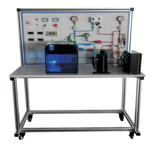 空調(diào)器原理實驗臺敞開式設(shè)計,安裝有制冷管路設(shè)備,配各種電路原理圖實訓(xùn)板,并將電路所需的電器元件安裝在實訓(xùn)板上,學(xué)生可根據(jù)電路原理圖的要求進行制冷電路的接線實訓(xùn)、制冷回路相關(guān)指示數(shù)據(jù)的分析、制冷回路常見故障分析等。窗式空調(diào)電氣控制線路的實際工業(yè)用電器,形象直觀,可靠性好,使用壽命長, 可自行連接線路,并任意設(shè)置故障點。適用于技工院校、職業(yè)學(xué)校作為制冷基本技能的實訓(xùn)。